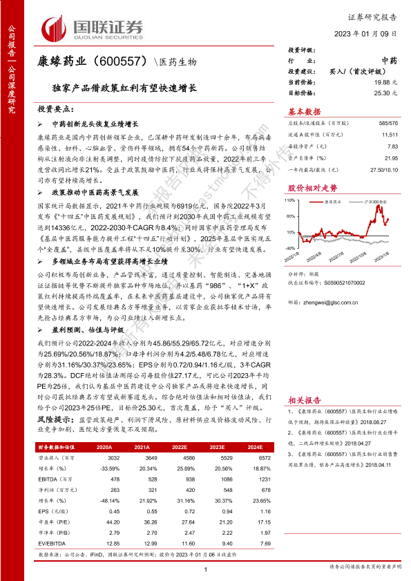 【国联证券】【20230109】深度报告-20230109-国联证券-康缘药业-600557.SH-独家产品借政策红利有望快速增长-34页