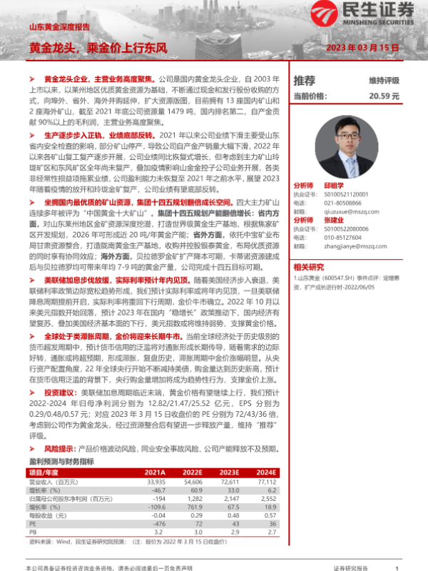 【民生证券】【20230315】深度报告-20230315-民生证券-山东黄金-600547.SH-山东黄金深度报告_黄金龙头_乘金价上行东风-40页