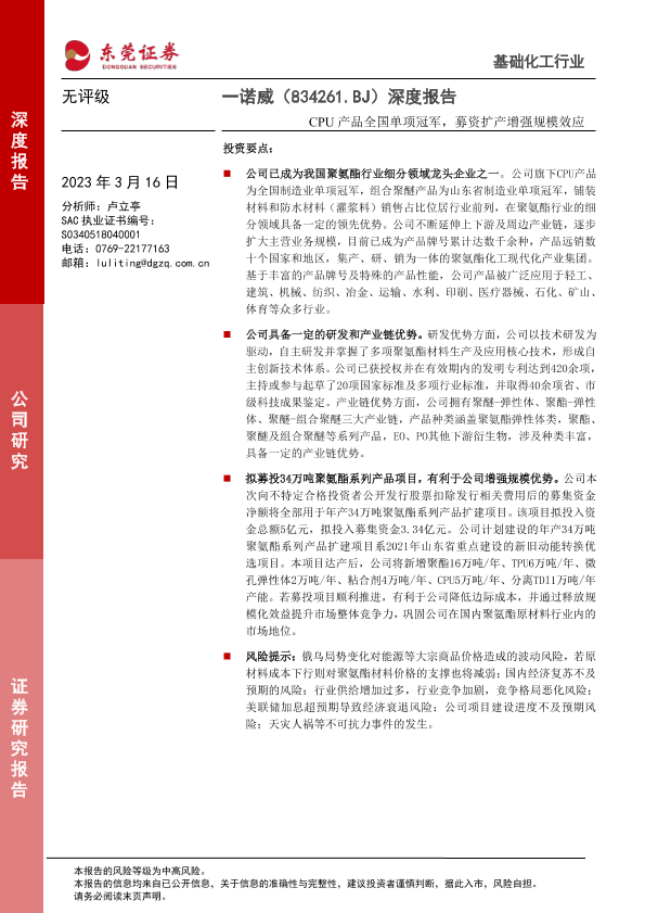 CPU产品 募资扩产 研发优势 规模效应 聚氨酯材料