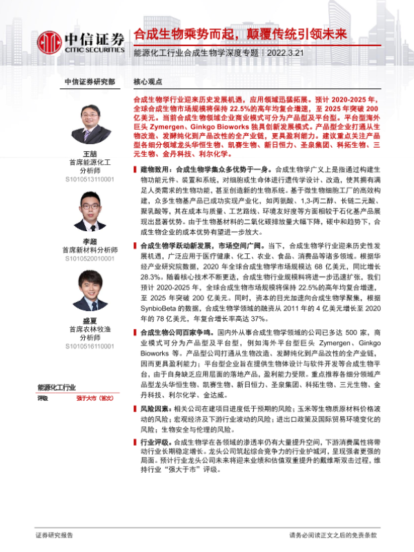 【中信证券】【20220321】能源化工行业合成生物学深度专题:合成生物乘势而起,颠覆传统引领未来-51页