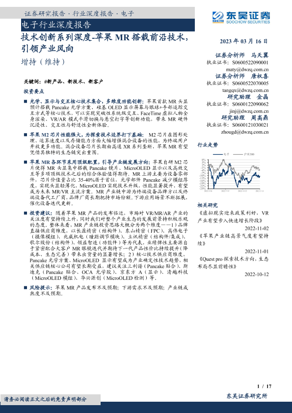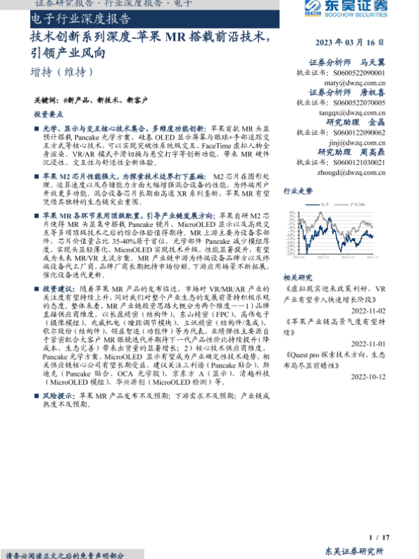 【东吴证券】【20230316】深度报告-20230316-东吴证券-电子行业深度报告_技术创新系列深度-苹果MR搭载前沿技术_引领产业风向-17页