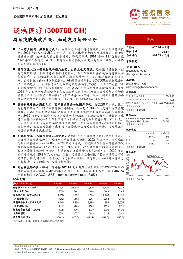 【招银国际】【20230317】深度报告-20230317-招银国际-迈瑞医疗-持续突破高端产线_加速发力新兴业务-65页