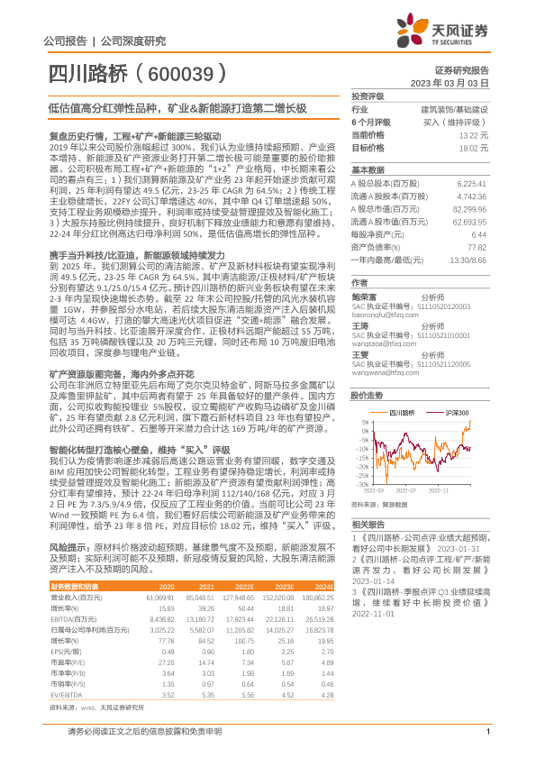 【天风证券】【20230303】深度报告-20230303-天风证券-四川路桥-600039.SH-低估值高分红弹性品种_矿业_新能源打造第二增长极-35页