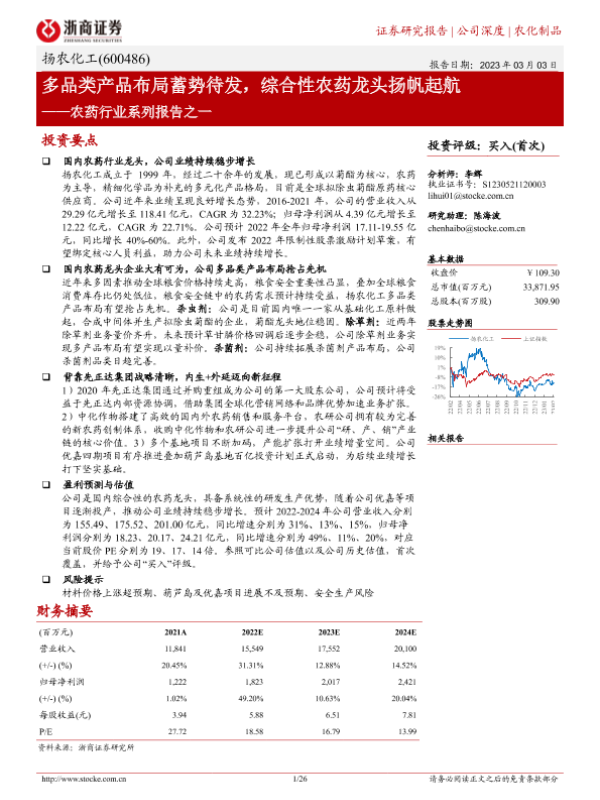 【浙商证券】【20230303】深度报告-20230303-浙商证券-扬农化工-600486.SH-农药行业系列报告之一_多品类产品布局蓄势待发_综合性农药龙头扬帆起航-26页