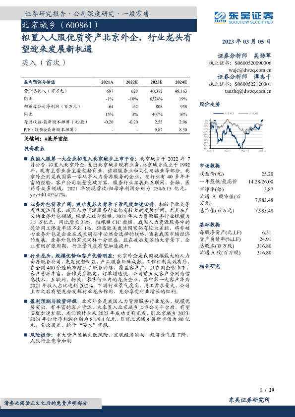 【东吴证券】【20230305】深度报告-20230305-东吴证券-北京城乡-600861.SH-拟置入人服优质资产北京外企_行业龙头有望迎来发展新机遇-29页