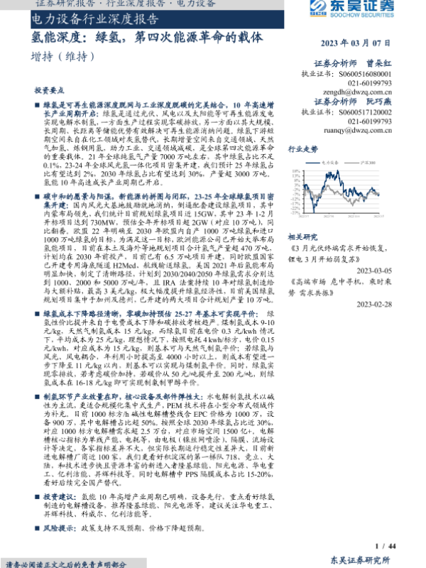 【东吴证券】【20230307】电力设备行业深度报告:氢能深度——绿氢,第四次能源革命的载体-44页