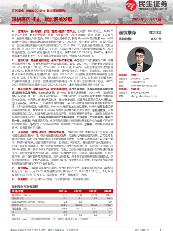 【民生证券】【20230307】深度报告-20230307-民生证券-江苏吴中-600200.SH-首次覆盖报告_深耕医药制造_赋能医美发展-42页