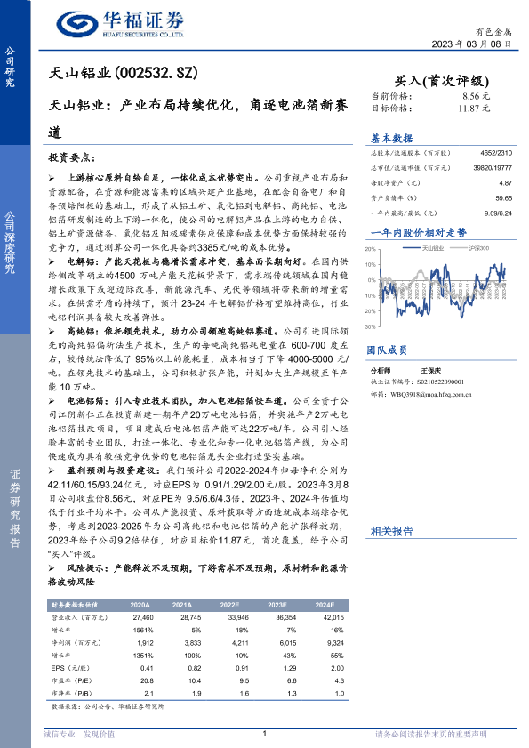 【华福证券】【20230308】天山铝业:产业布局持续优化,角逐电池箔新赛道-32页