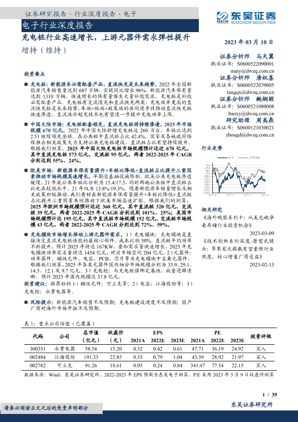 【东吴证券】【20230310】充电桩行业高速增长_上游元器件需求弹性提升-39页
