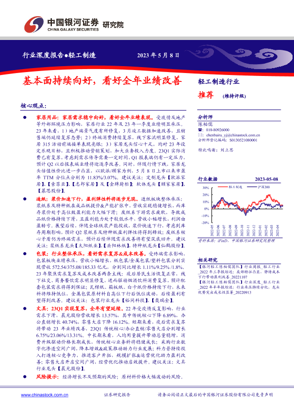 【银河证券】【20230508】轻工制造行业深度报告_基本面持续向好_看好全年业绩改善-25页
