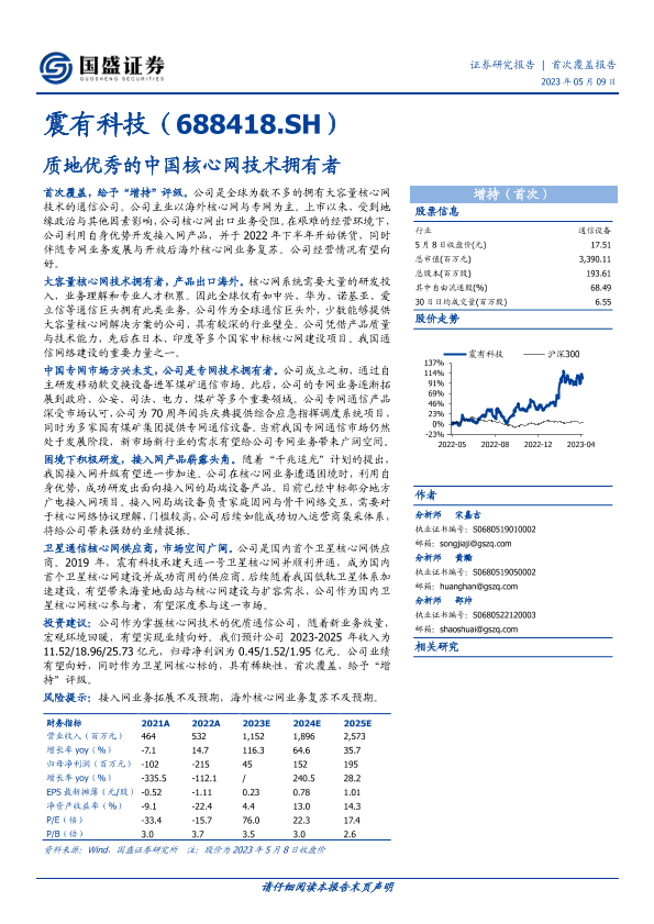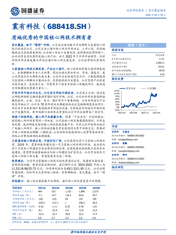 【国盛证券】【20230509】深度报告-20230509-国盛证券-震有科技-688418.SH-质地优秀的中国核心网技术拥有者-32页