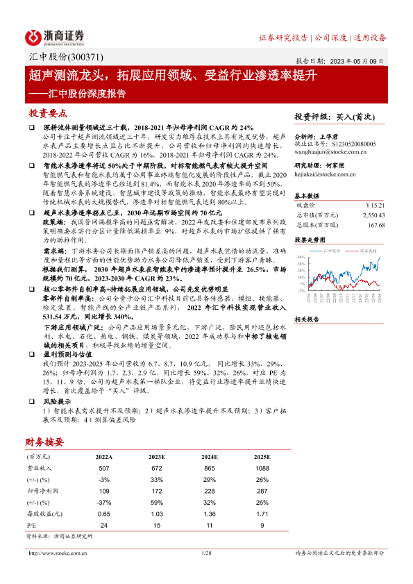 【浙商证券】【20230509】汇中股份深度报告_超声测流龙头_拓展应用领域_受益行业渗透率提升-28页