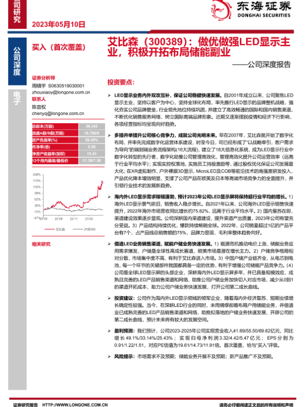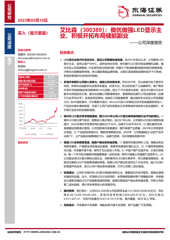 【东海证券】【20230510】艾比森(300389):做优做强LED显示主业,积极开拓布局储能副业——公司深度报告-21页