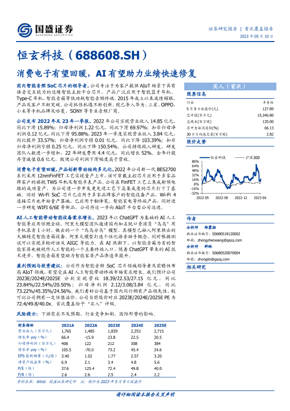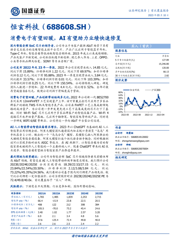 【国盛证券】【20230510】深度报告-20230510-国盛证券-恒玄科技-688608.SH-消费电子有望回暖_AI有望助力业绩快速修复-22页