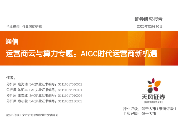 【天风证券】【20230510】运营商云与算力专题:AIGC时代运营商新机遇-44页
