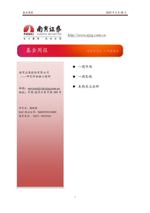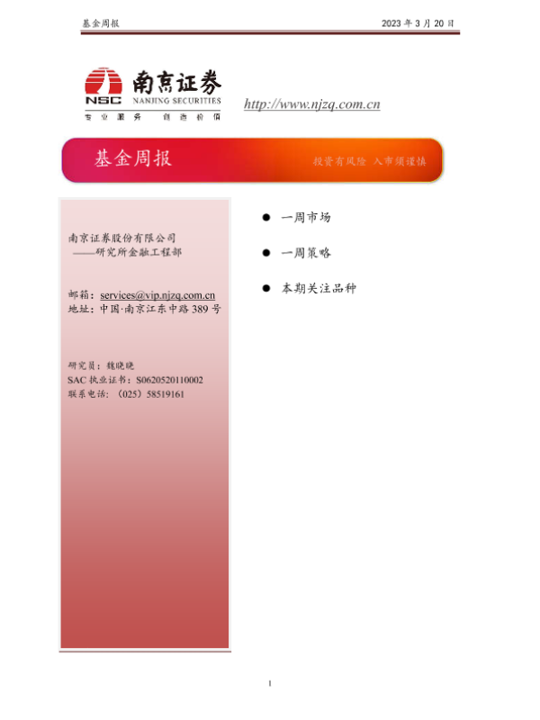 【南京证券】【20230320】基金周报 2023年 3月 20日-17页