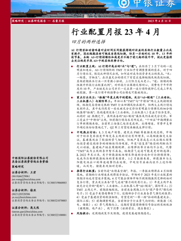 【中银证券】【20230411】20230311-中银证券-行业配置月报23年4月_四月的两种选择-30页