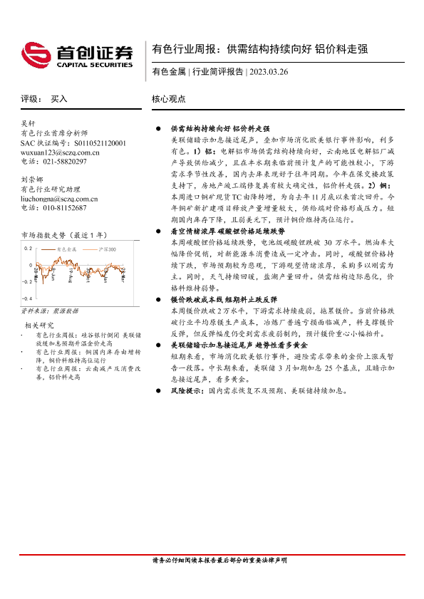 【首创证券】【20230326】有色行业周报:供需结构持续向好铝价料走强-21页