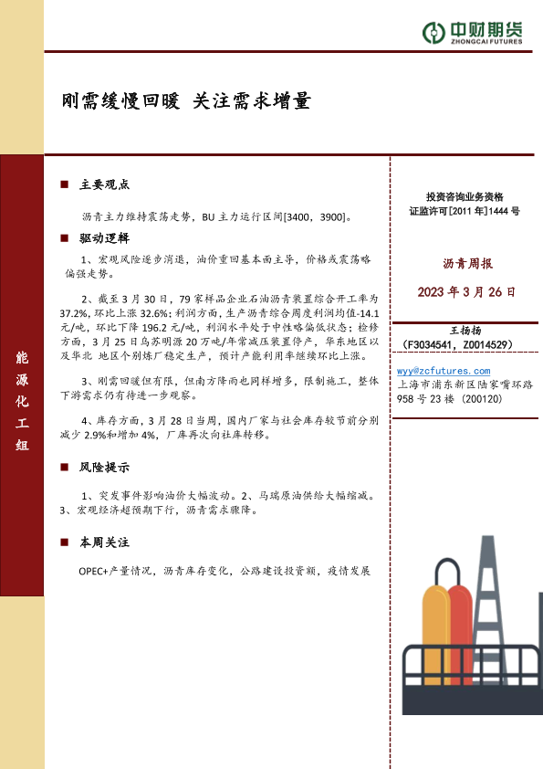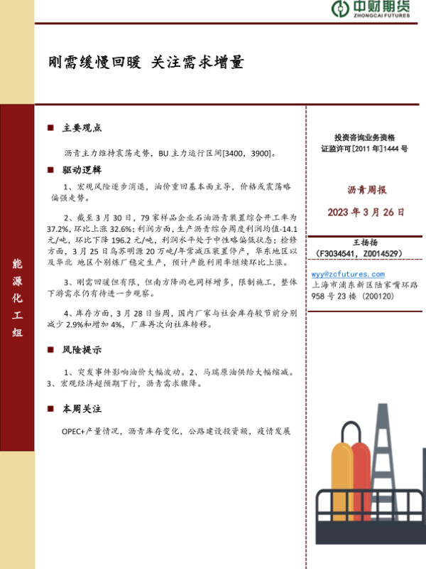 【中财期货】【20230326】沥青周报:刚需缓慢回暖,关注需求增量-6页