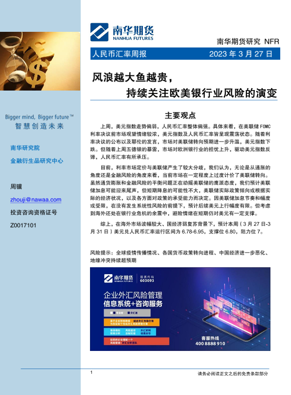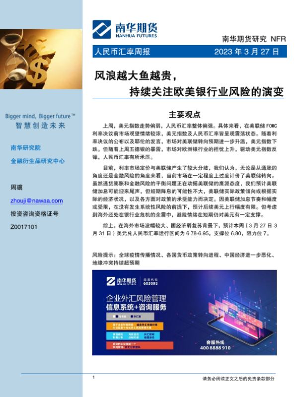 【南华期货】【20230327】人民币汇率周报:风浪越大鱼越贵,持续关注欧美银行业风险的演变-18页