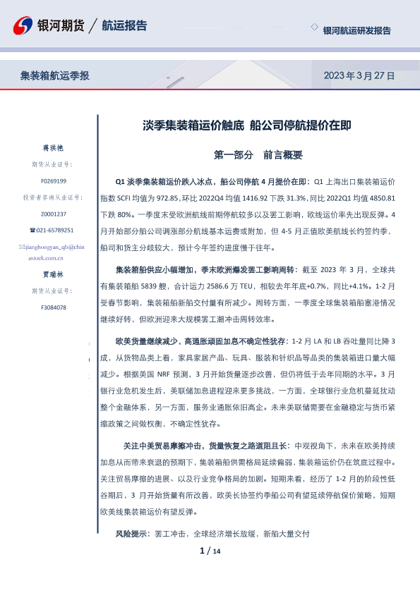 【银河期货】【20230327】集装箱航运季报_淡季集装箱运价触底_船公司停航提价在即-14页