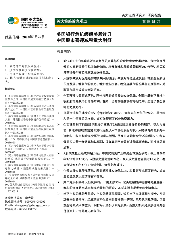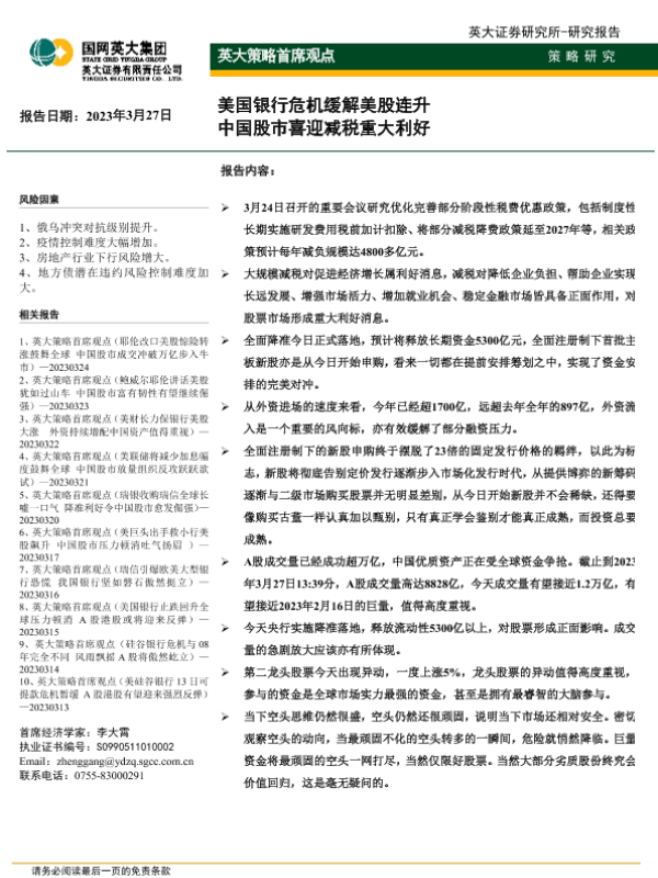 【英大证券】【20230327】英大证券-英大策略首席观点_美国银行危机缓解美股连升_中国股市喜迎减税重大利好-2页