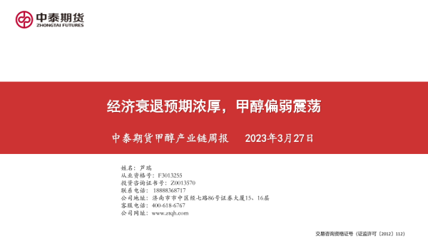 【中泰期货】【20230327】经济衰退预期浓厚_甲醇偏弱震荡-24页