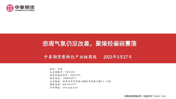 【中泰期货】【20230327】悲观气氛仍没改善_聚烯烃偏弱震荡-42页