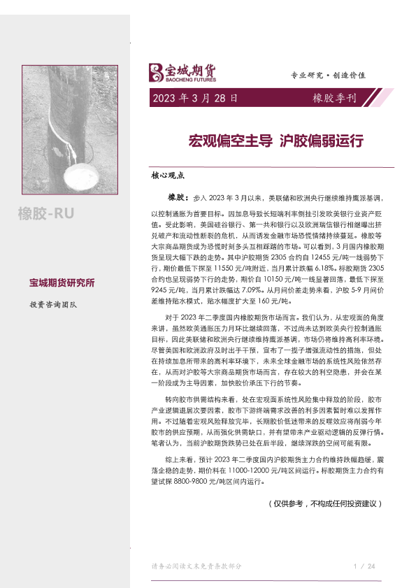 【宝城期货】【20230328】橡胶季刊_宏观偏空主导_沪胶偏弱运行-27页