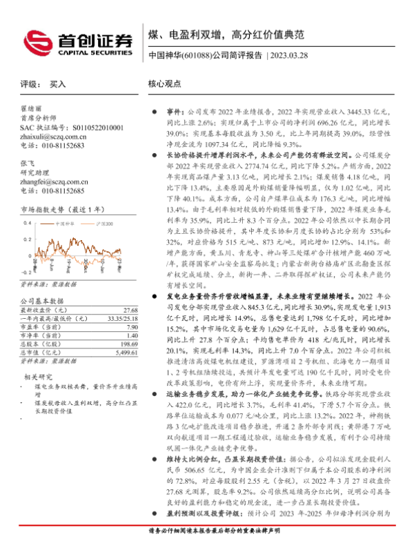 【首创证券】【20230328】中国神华(601088)公司简评报告-5页
