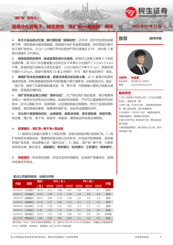 【民生证券】【20220321】银行业“高扩张”系列之一:信用分化趋势下,城农商的“高扩张-高业绩”循环-18页