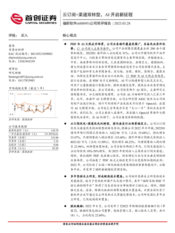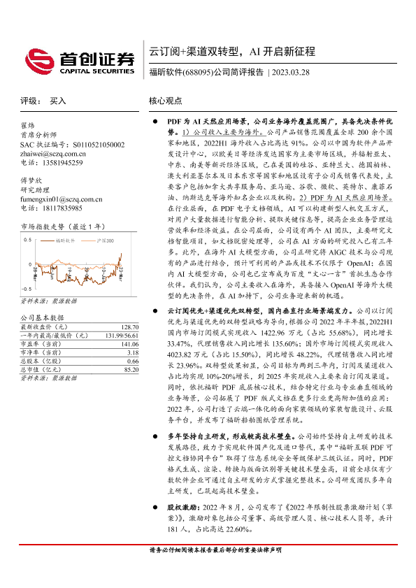 【首创证券】【20230328】福昕软件(688095)公司简评报告 云订阅+渠道双转型,AI开启新征程-5页