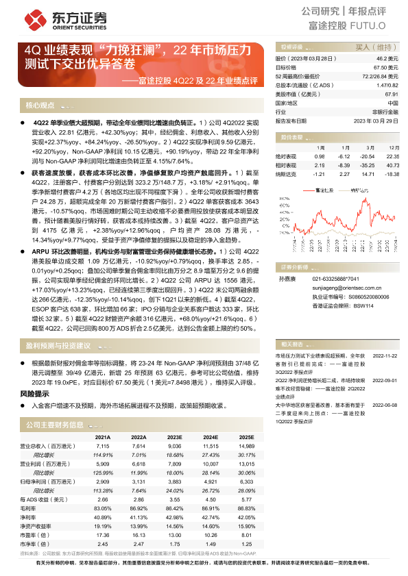 业绩点评 净利润 富途控股 市场压力测试 非银行金融