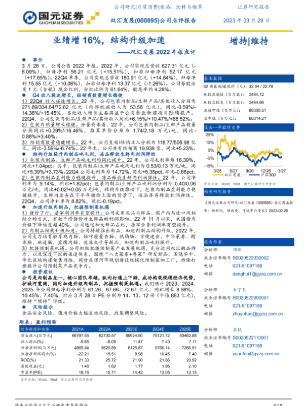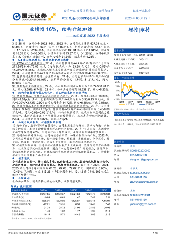 【国元证券】【20230329】双汇发展2022年报点评_业绩增16_结构升级加速-3页