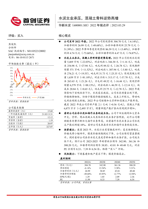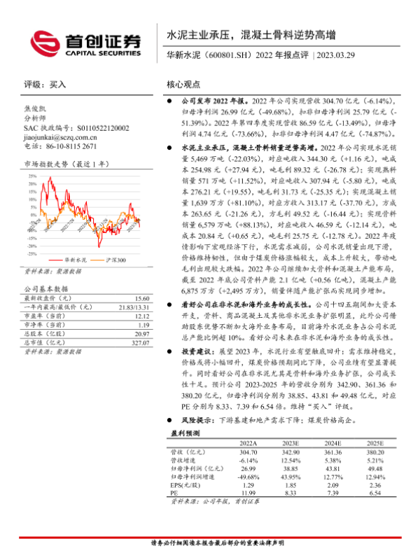 【首创证券】【20230329】2022年报点评_水泥主业承压_混凝土骨料逆势高增-3页