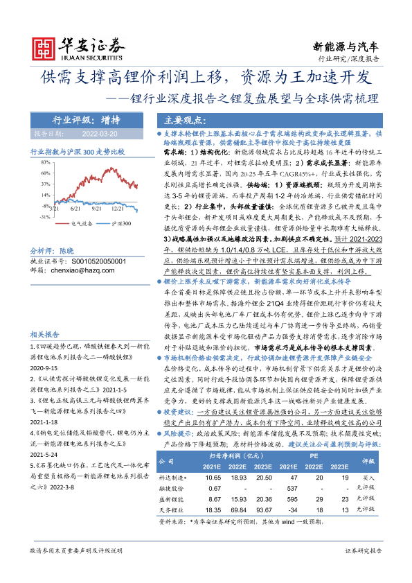 【华安证券】【20220320】锂行业深度报告之锂复盘展望与全球供需梳理:供需支撑高锂价利润上移,资源为王加速开发-29页