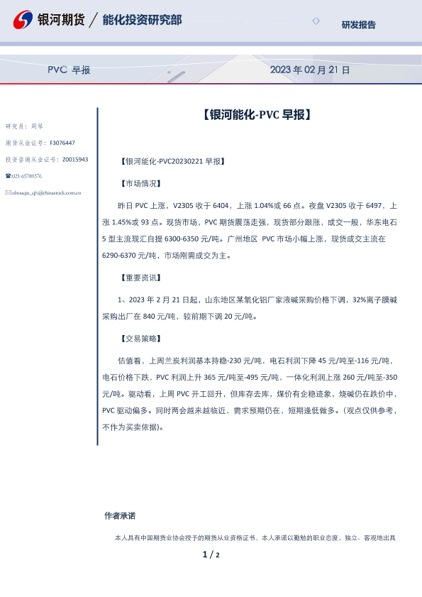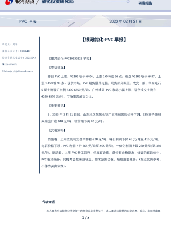 【银河期货】【20230221】PVC早报 2023年 02月 21日-2页