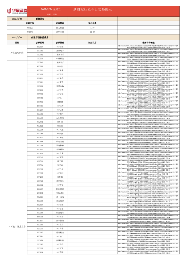 【华宝证券】【20230224】20230224-华宝证券-新股发行及今日交易提示-3页