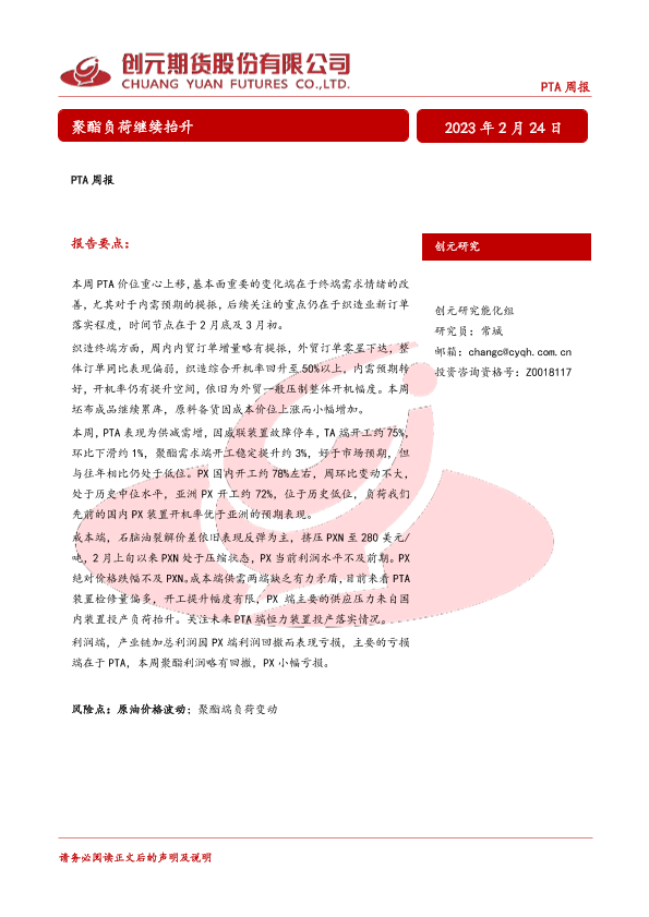 【创元期货】【20230224】PTA周报_聚酯负荷继续抬升-35页