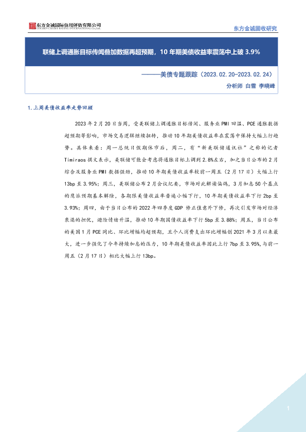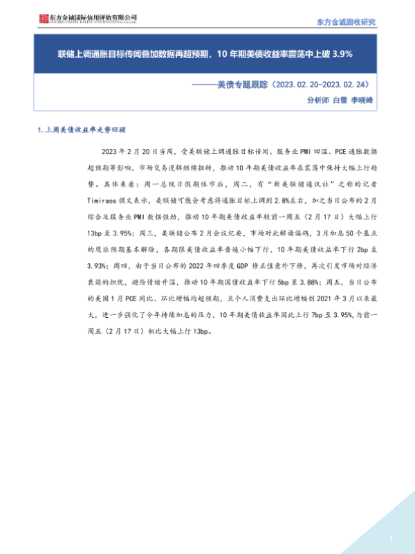 【东方金诚】【20230224】联储上调通胀目标传闻叠加数据再超预期_10年期美债收益率震荡中上破3.9%-5页
