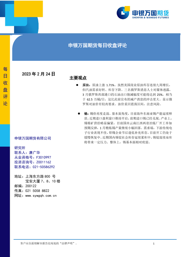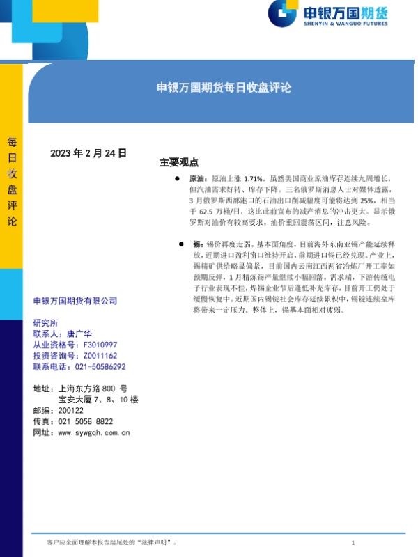 【申银万国期货】【20230224】申银万国期货-每日收盘评论-12页