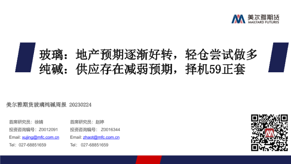 【美尔雅期货】【20230224】玻璃纯碱周报_玻璃_地产预期逐渐好转_轻仓尝试做多_纯碱_供应存在减弱预期_择机59正套-30页
