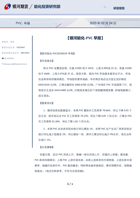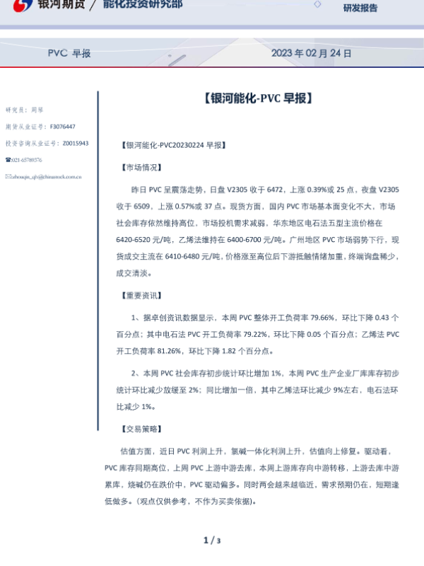 【银河期货】【20230224】PVC早报 2023年 02月 24日-3页