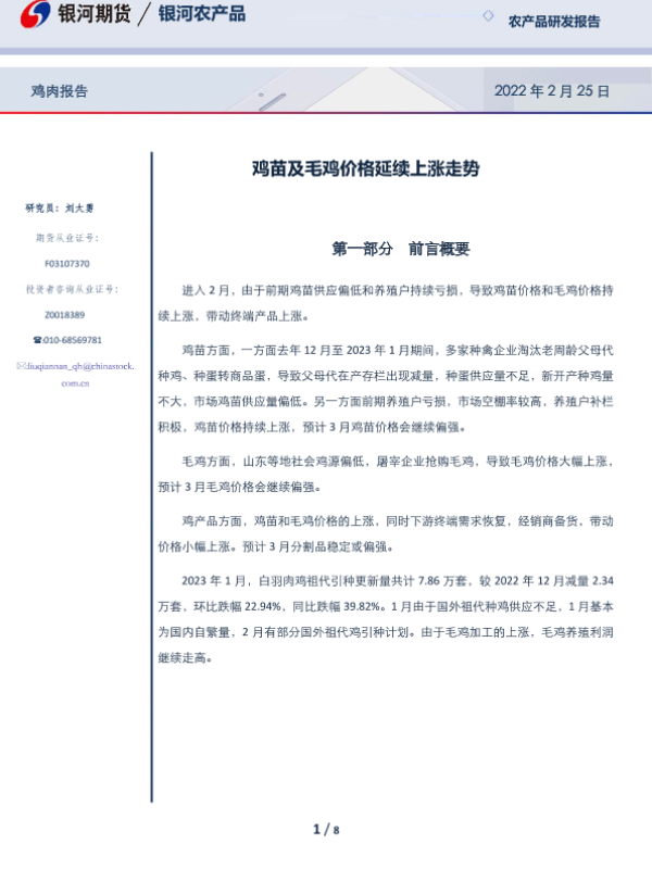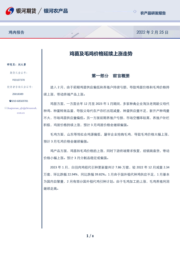 【银河期货】【20230225】鸡苗及毛鸡价格延续上涨走势-8页