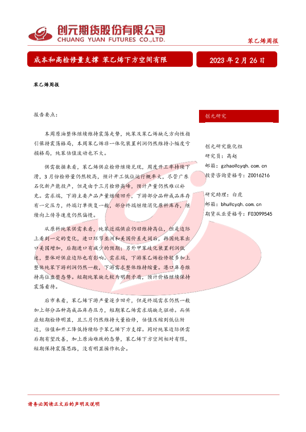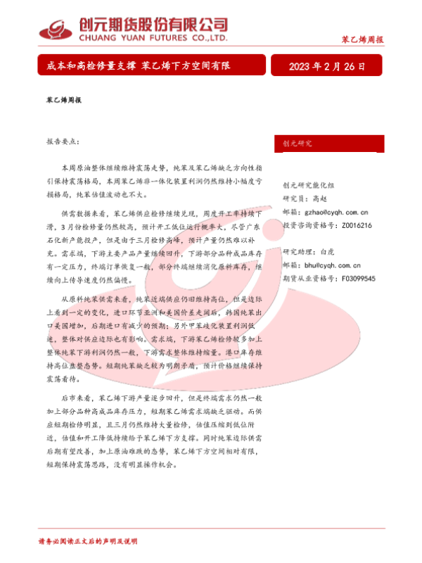 【创元期货】【20230226】20230226-创元期货-苯乙烯周报_成本和高检修量支撑_苯乙烯下方空间有限-22页