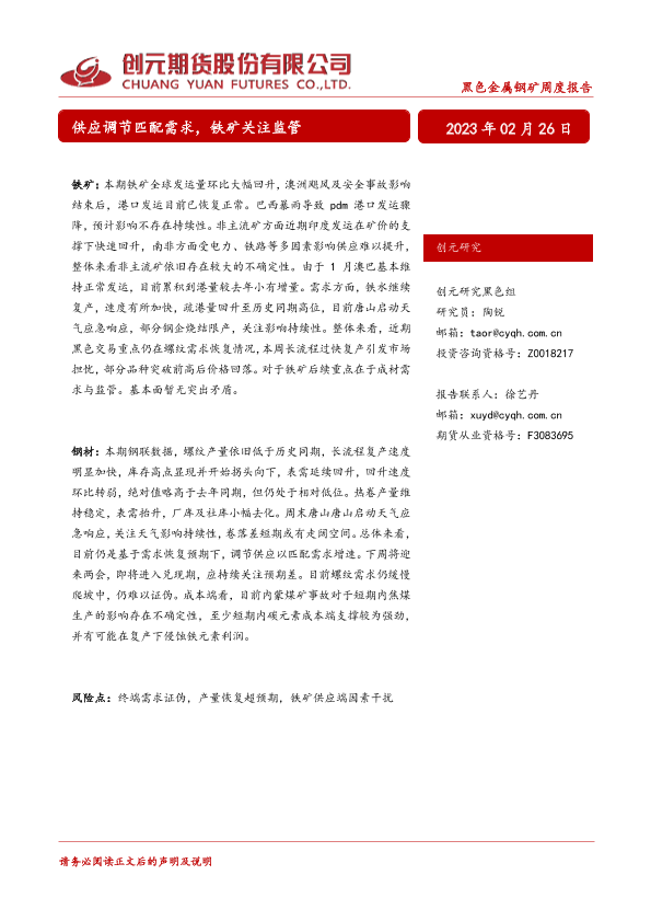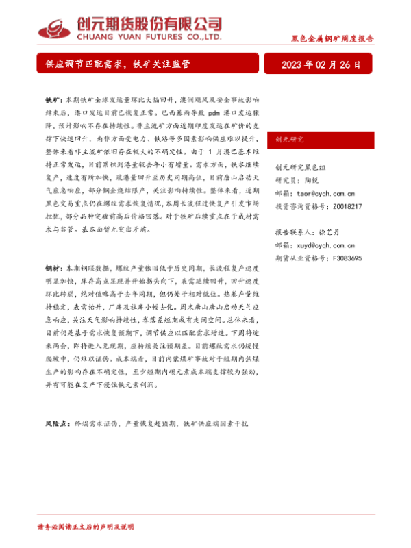 【创元期货】【20230226】黑色金属钢矿周度报告_供应调节匹配需求_铁矿关注监管-31页