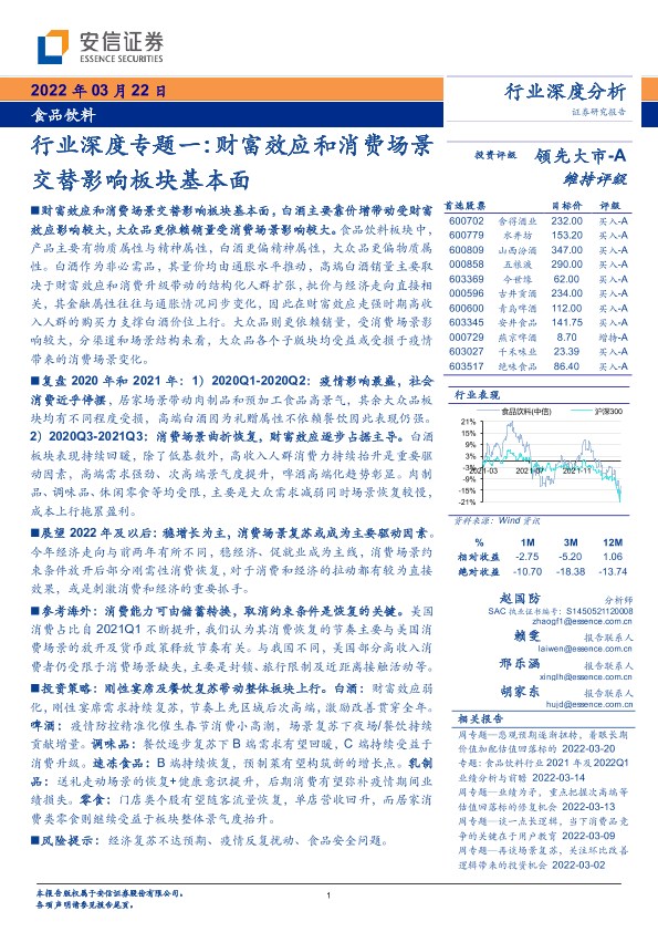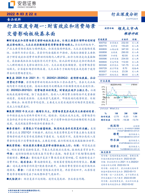 【安信证券】【20220322】食品饮料行业深度专题一:财富效应和消费场景交替影响板块基本面-21页