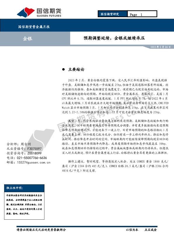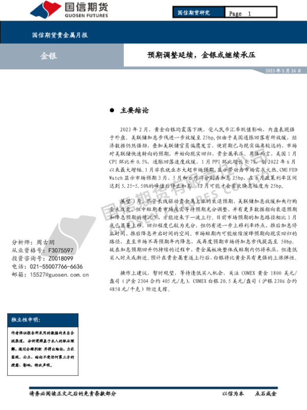 【国信期货】【20230226】国信期货-贵金属月报:预期调整延续,金银或继续承压-15页