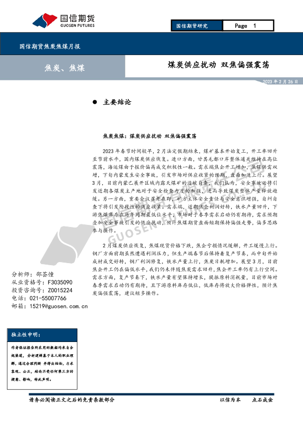 【国信期货】【20230226】国信期货焦炭焦煤月报:煤炭供应扰动双焦偏强震荡-12页