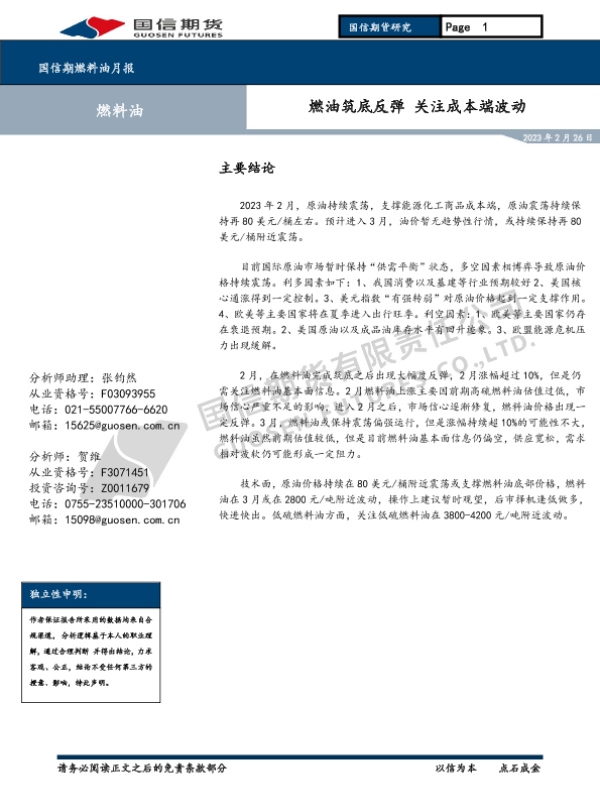 【国信期货】【20230226】国信期货燃料油月报:燃油筑底反弹,关注成本端波动-10页